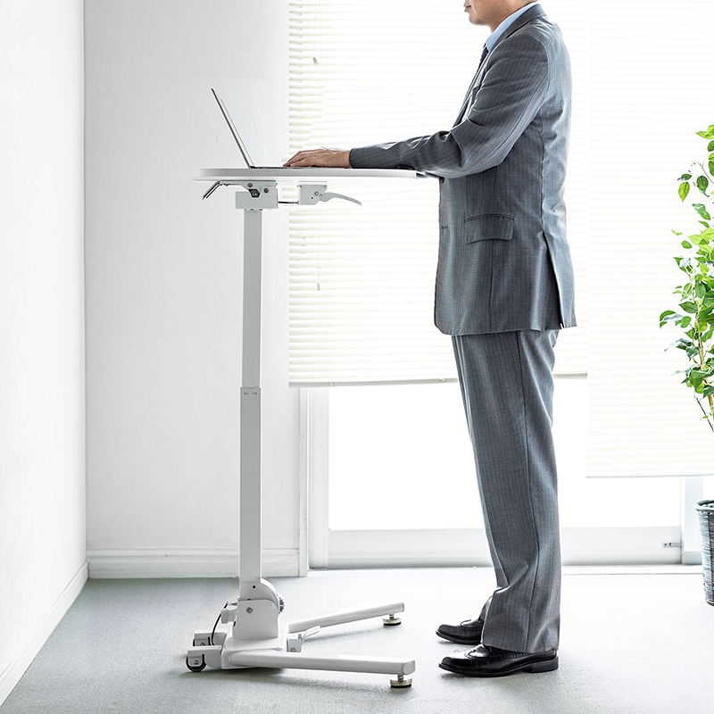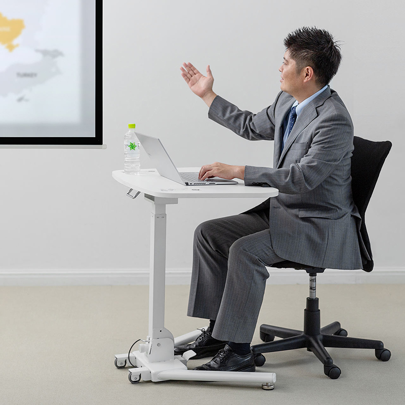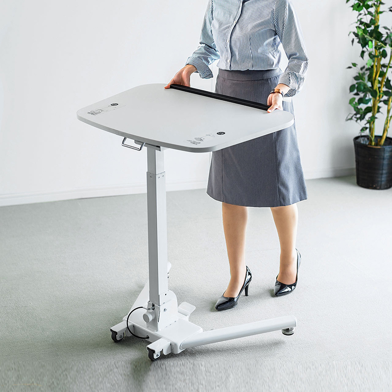 • 脚部设有按钮,踏上后可调节桌面高度。
