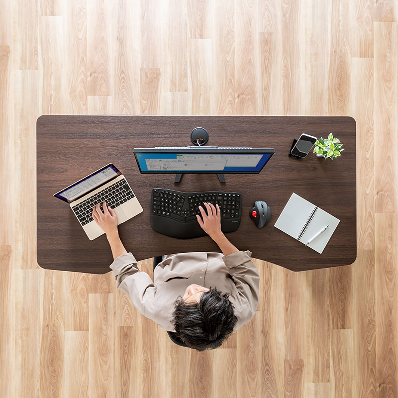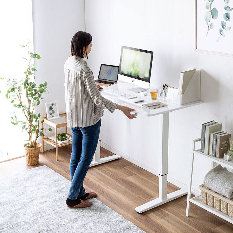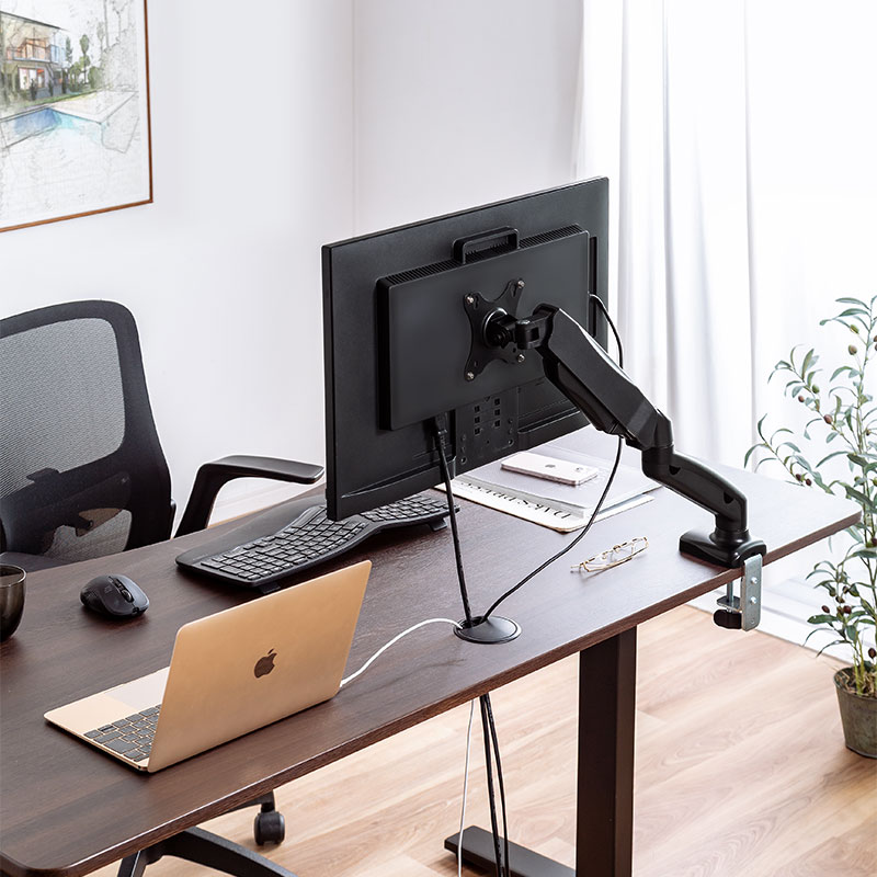 气杆钢丝绳联动结构,按压桌面任何位置都可轻松升降。