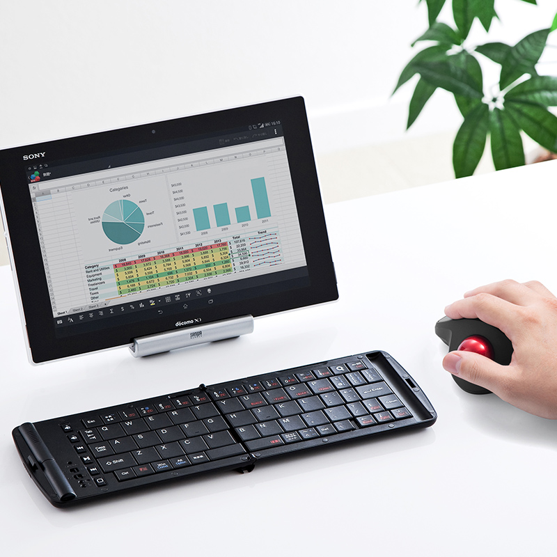 - 轨迹球鼠标,手指转动即可操作光标移动。