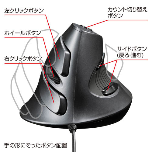 人体工学设计,保持手腕自然状态的有线款式鼠标。