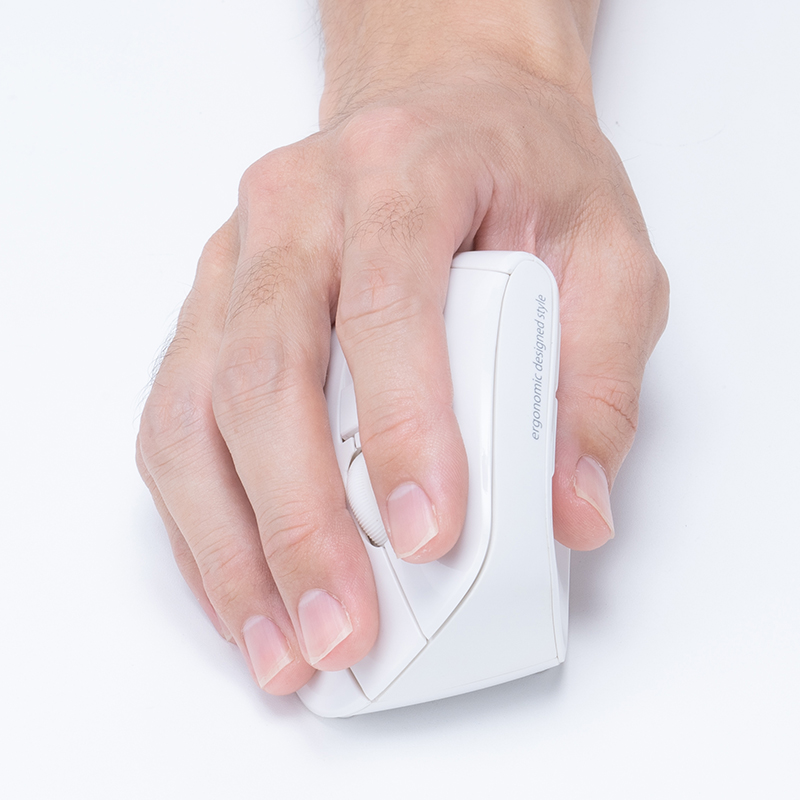 - 人体工学设计,从自然的角度以横握式操控鼠标。