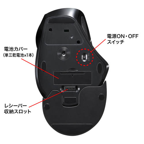 附接收器收纳槽,不使用时可置放于鼠标内。