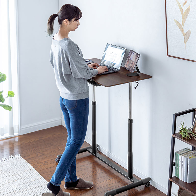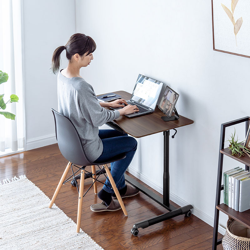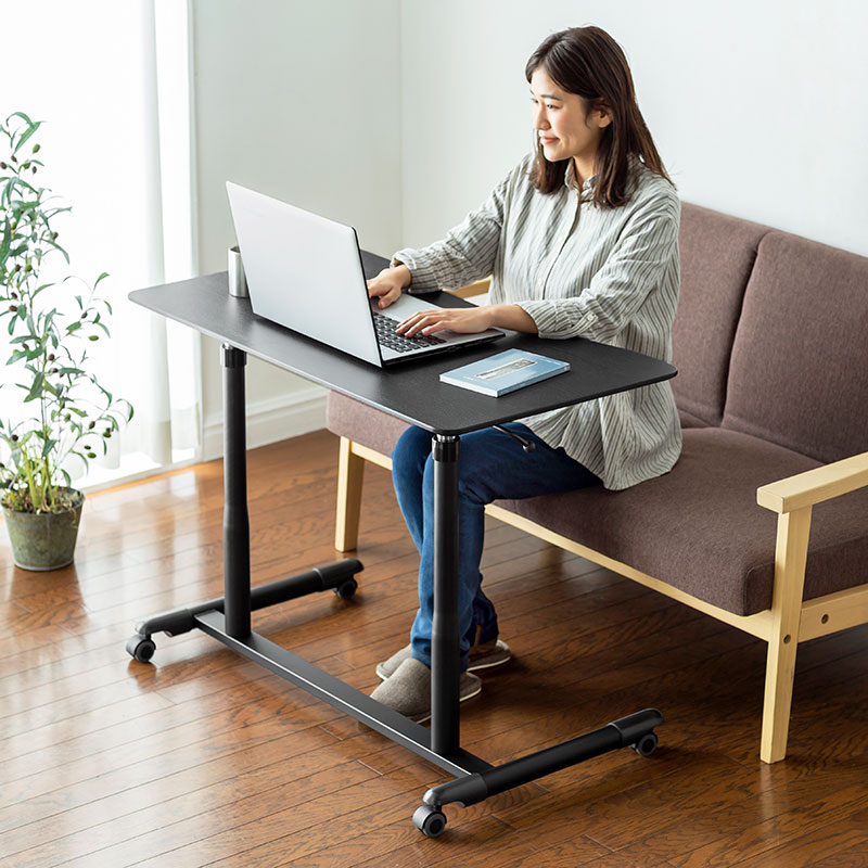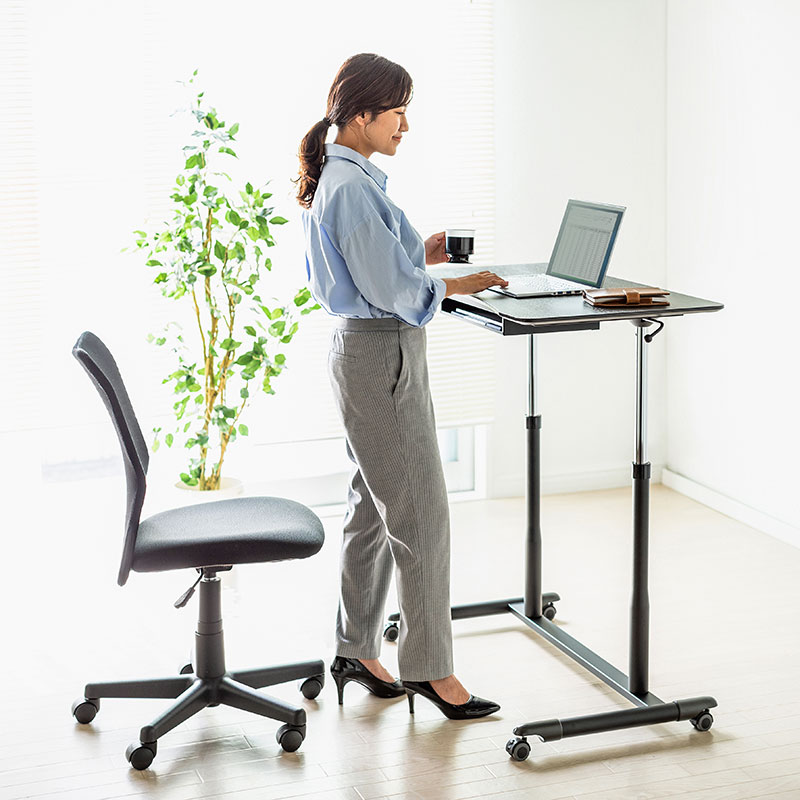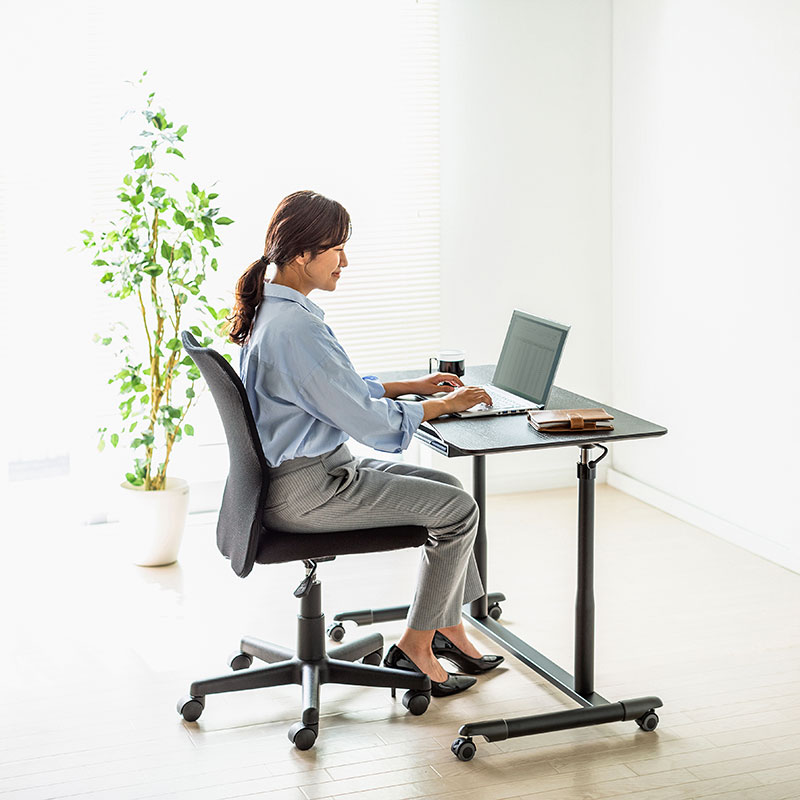 桌面/木制(MDF)+盐化塑料薄膜贴膜脚架/钢制(环氧树脂粉体涂装)支柱/铝・钢制 脚轮/ABS+橡胶