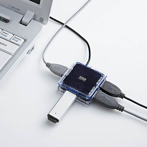 35cm长USB连接线可以缠绕在集线器上,USB口可收纳在背面。