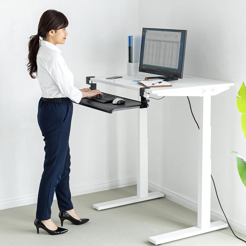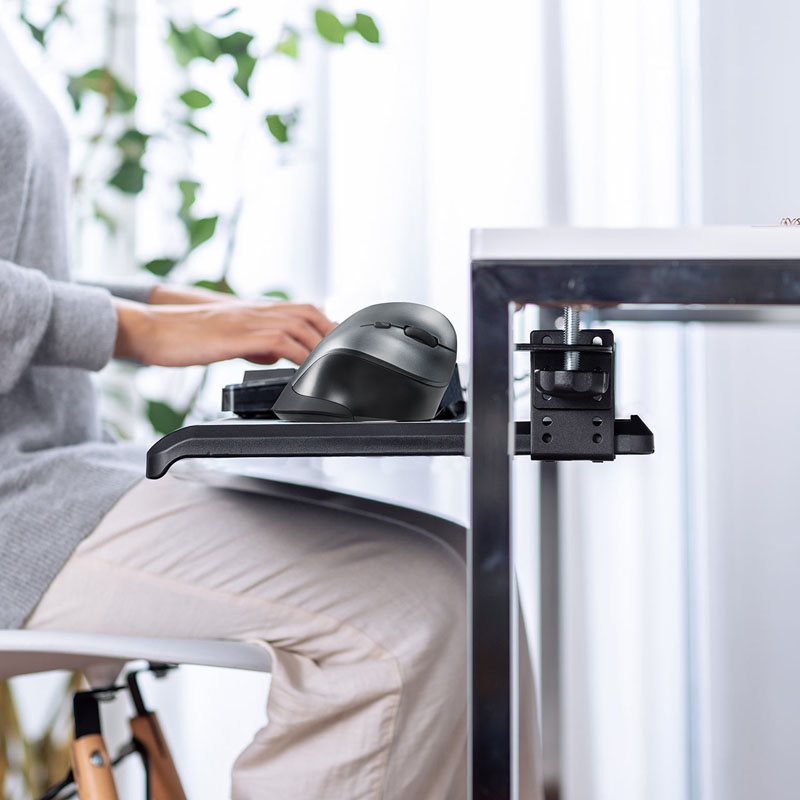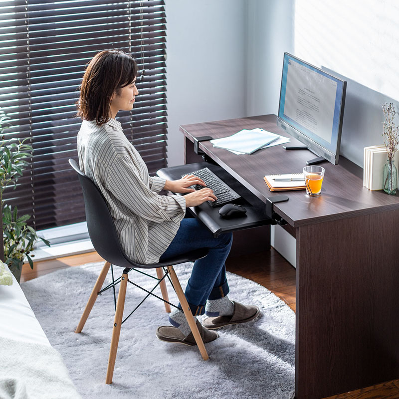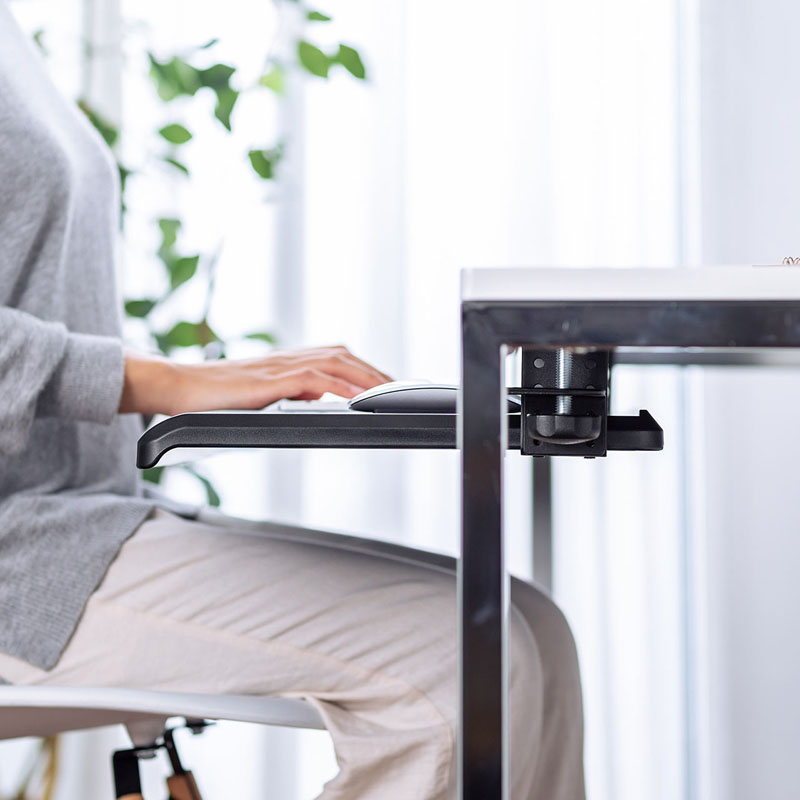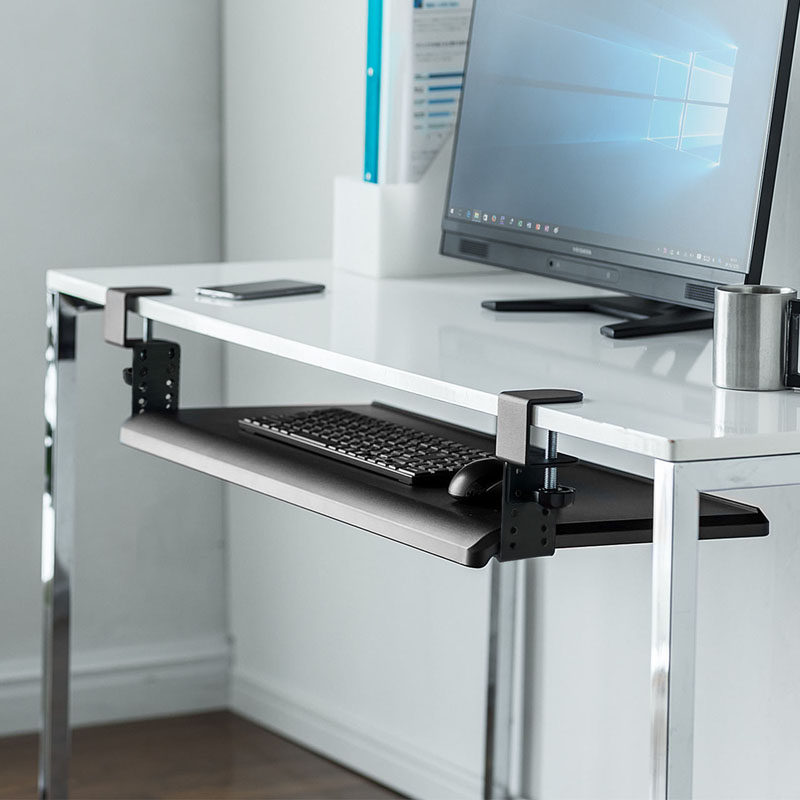 通过抽屉托盘将鼠标键盘拉近身体,调节坐姿,减缓疲劳。