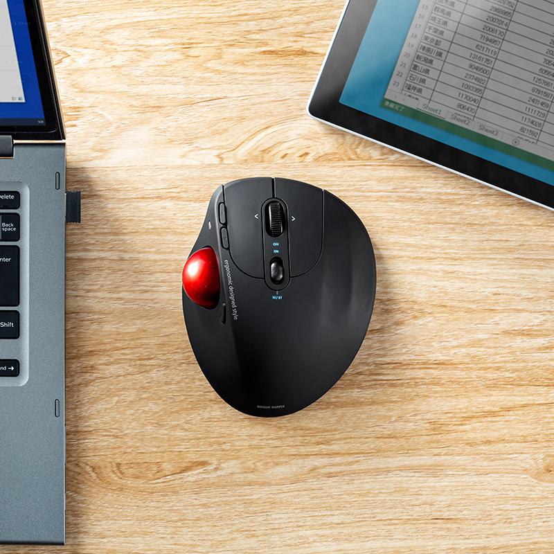 附34mm大型轨迹球,轻轻拨动大拇指即可操作鼠标。