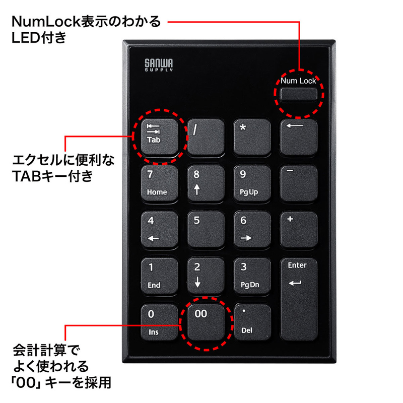 - 配有「Tab」と「00」键,适合会计等数字录入者的使用习惯,使用方便。