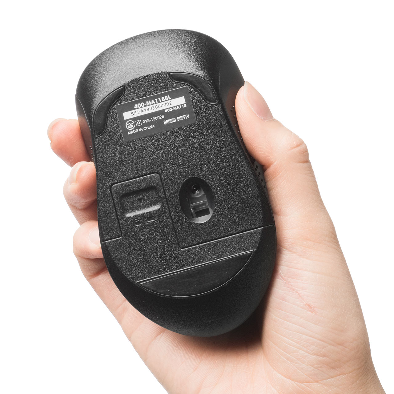 USB接收器可以收入到鼠标本体,电池盖内部。
