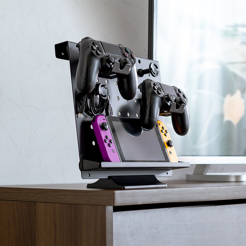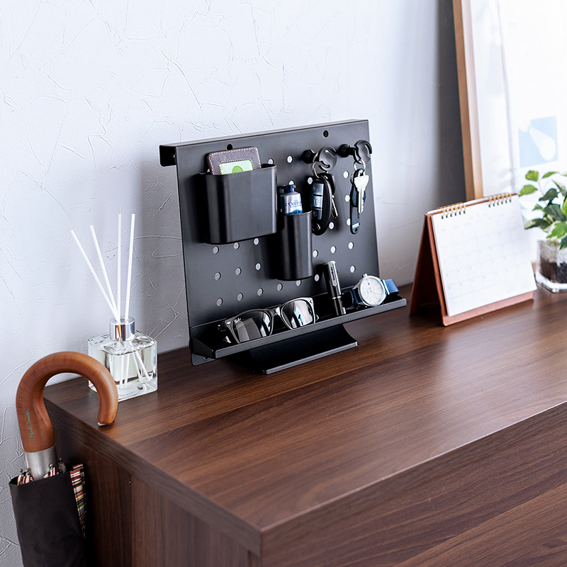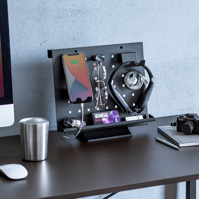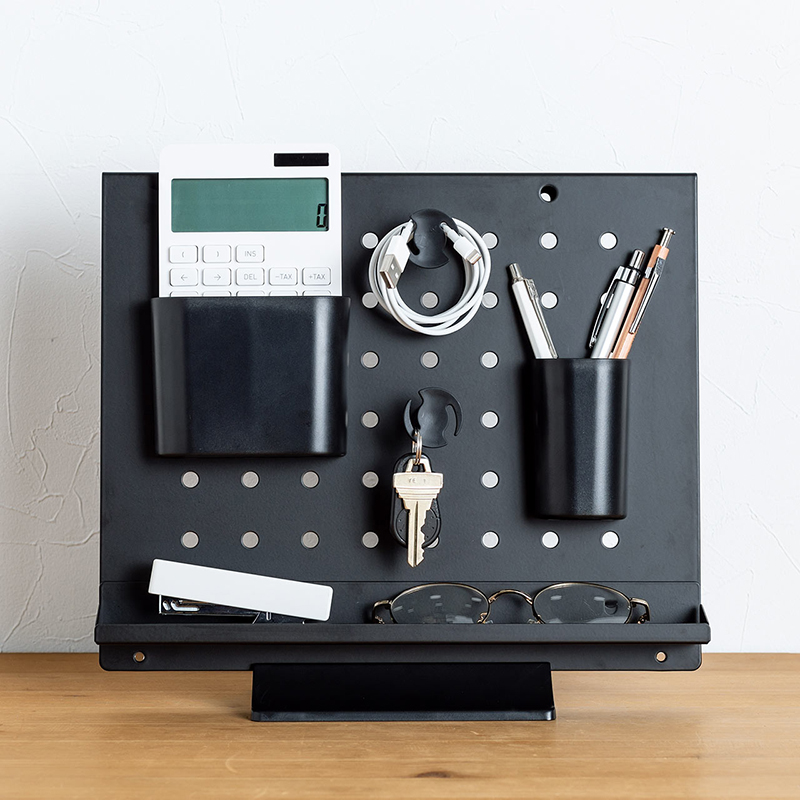 附有多个洞洞配件,可挂置线束、耳机、文具等物品。