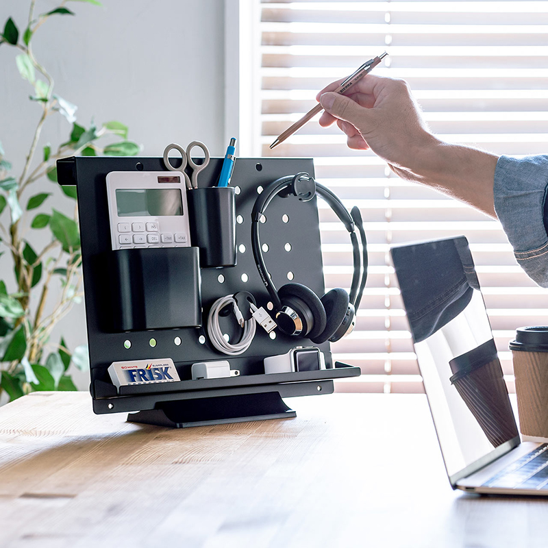 享受自由拼搭乐趣的可立式桌面洞洞板。