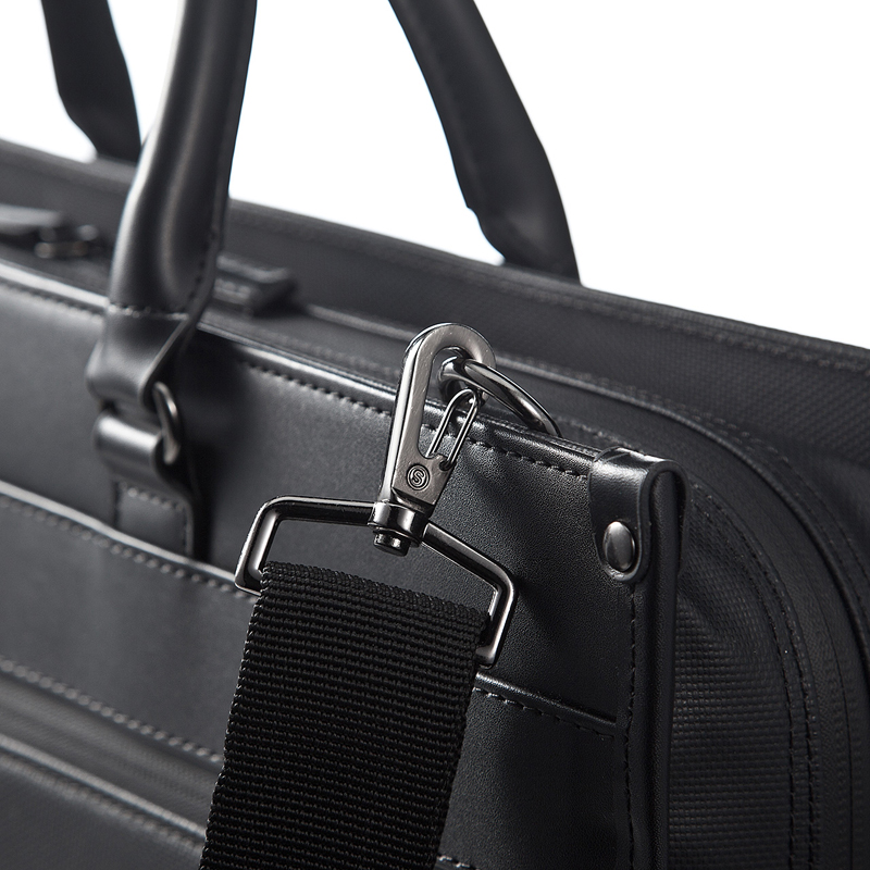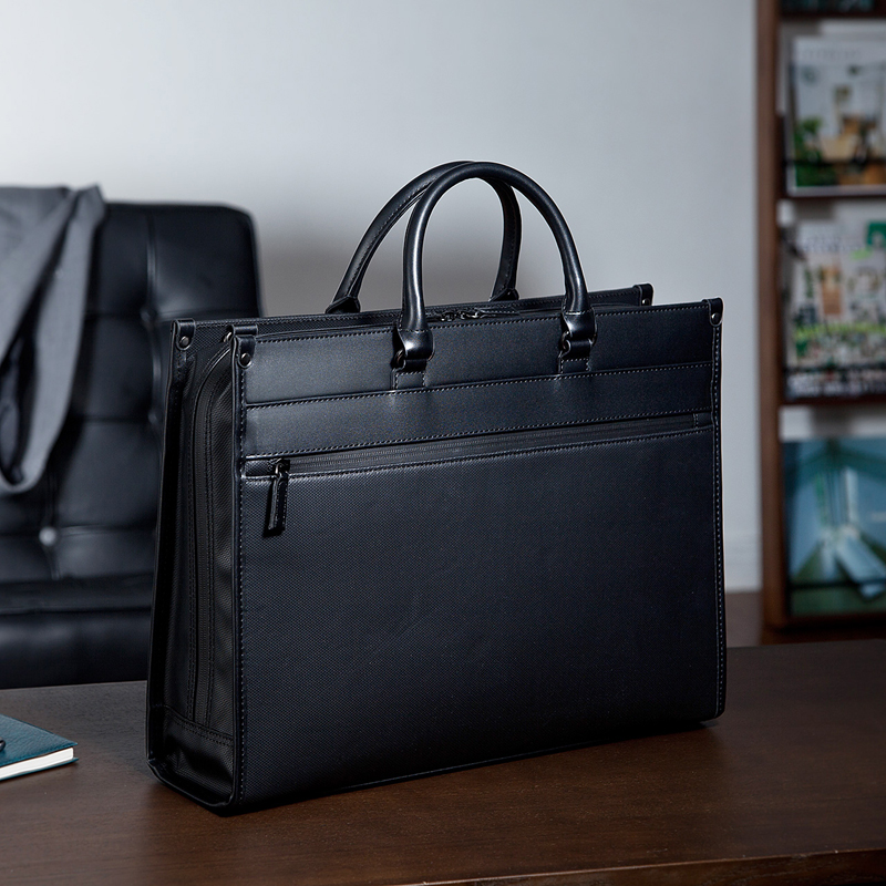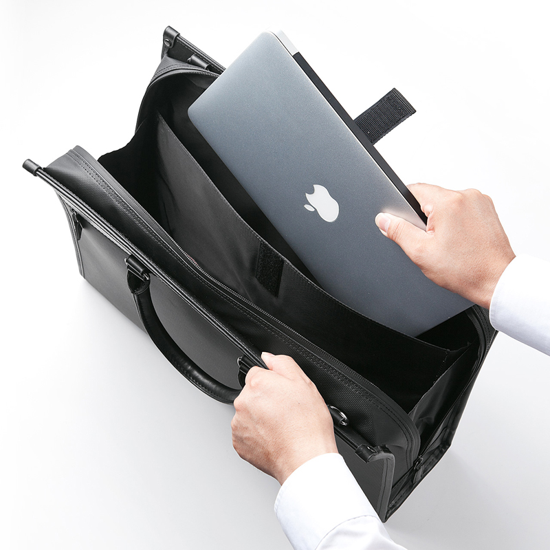 - 采用防泼水材质和拉链的商务电脑包。