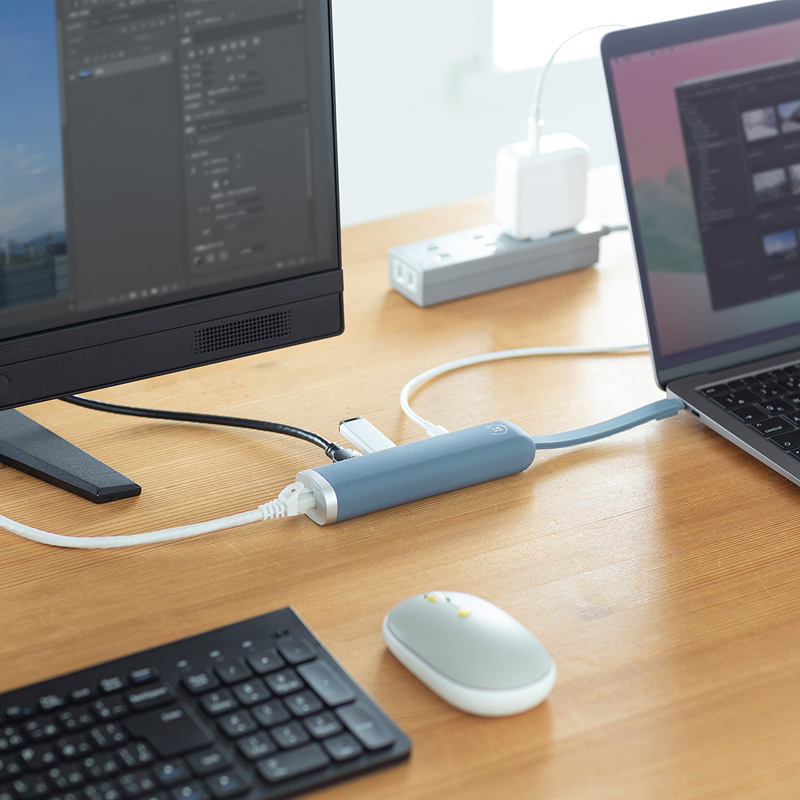 USB Type-C支持USB PD,可通过本产品为连接的PC供电。